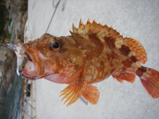いきなり、キビナゴの仕掛けにヒット!20センチほどのガシラ君登場。